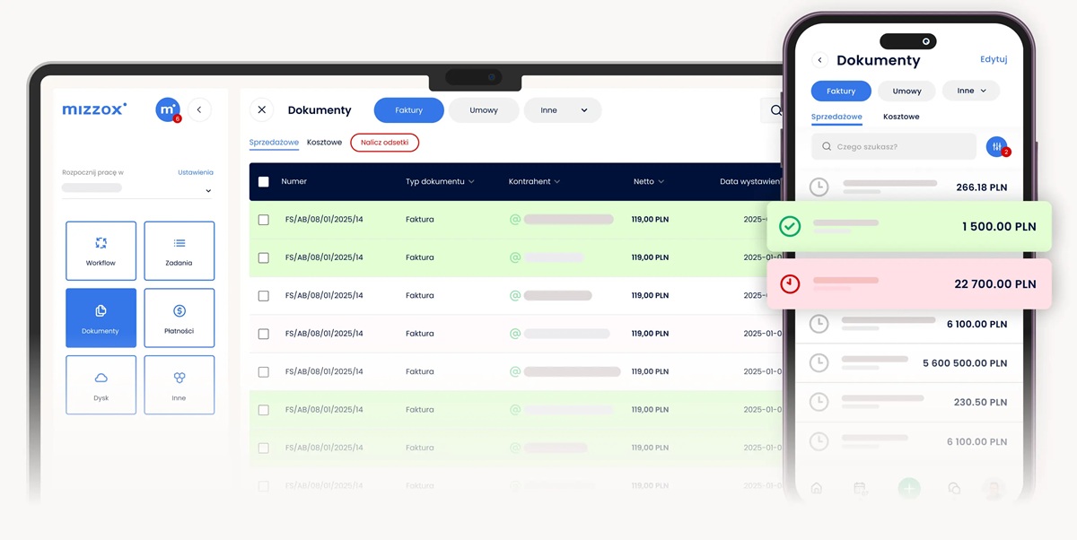 Mizzox – polski cyfrowy asystent biznesowy, który kompleksowo wspiera małe i średnie firmy w codziennym zarządzaniu. Platforma integruje wszystkie kluczowe funkcje prowadzenia biznesu: wystawianie faktur z płatnością online, zarządzanie dokumentami i zadaniami, dysk w chmurze, workflow oraz synchronizację z bankami. Dzięki sztucznej inteligencji automatyzuje rutynowe obowiązki – przypomina o płatnościach, skanuje dokumenty OCR, umożliwia przelewy bezpośrednio z systemu i zapewnia dostęp do wszystkich danych z dowolnego urządzenia. Firma z siedzibą w Krakowie reprezentuje nowe pokolenie polskich rozwiązań technologicznych, które łączą prostotę obsługi z zaawansowaną automatyzacją procesów biznesowych.