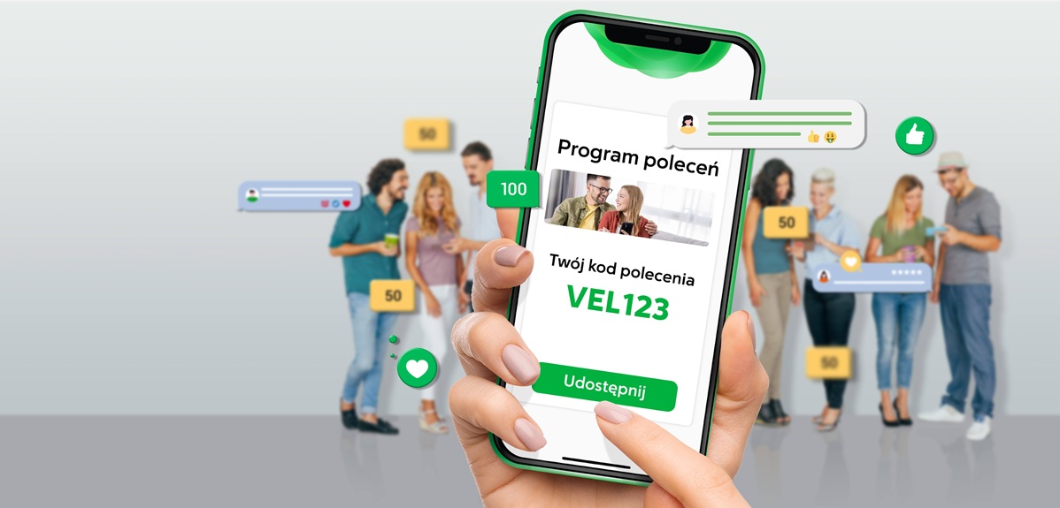 Nowi klienci zyskują 50 zł za założenie VeloKonta z kodem polecenia, a obecni 100 zł za każdą skuteczną rekomendację. Promocja „Doceniam Velo – polecam Velo” zostaje przedłużona do 31 lipca 2026 r. W zależności od swojej aktywności, właściciele VeloKonta mogą korzystać z wielu ułatwień i promocji w programie VeloKorzyści. Zaletami są też prosta wielofunkcyjna aplikacja oraz pomoc wirtualnej asystentki Veli, która sprawnie wspiera klientów w ponad 50 różnych operacjach bankowych.